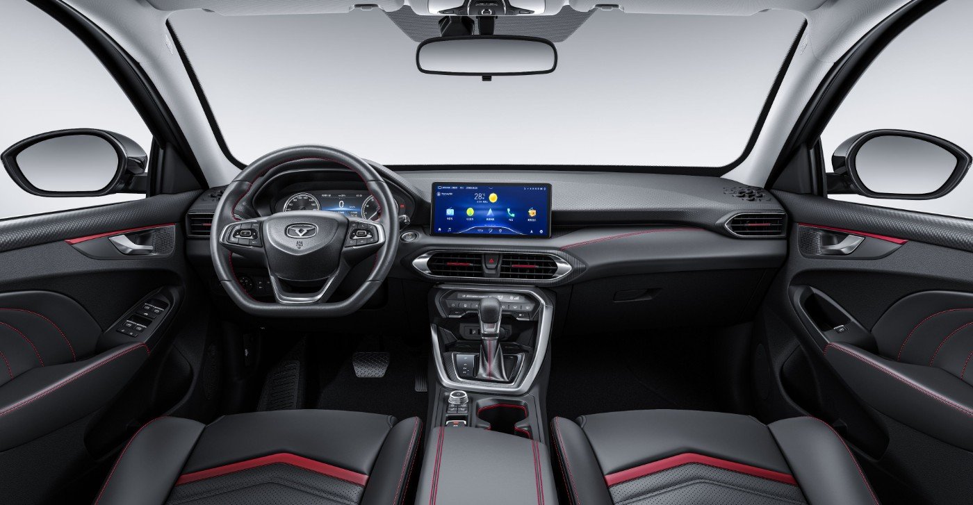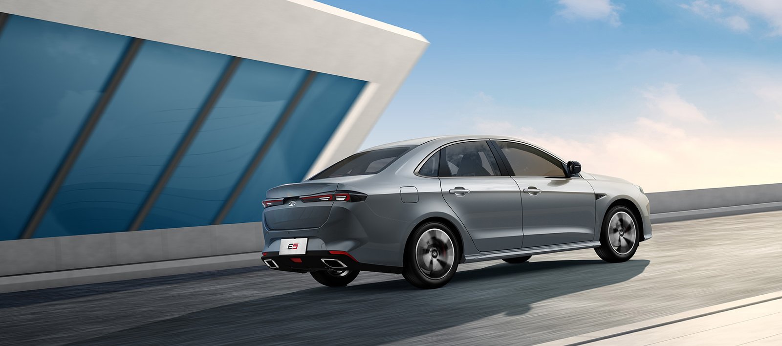 Stylish and sporty appearance, showcasing the innovative sedan styling.